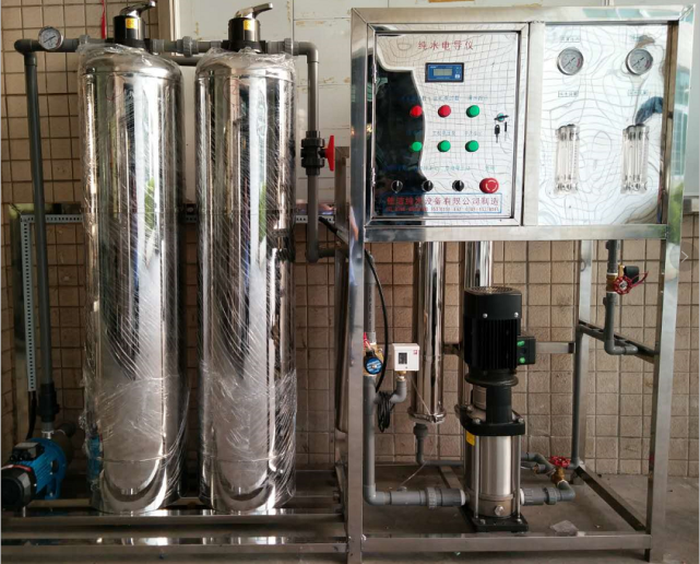 反滲透純水設(shè)備的工作原理其實與反滲透膜的大致相同,主要是把相同體積的稀溶液即淡水等以及濃液也就是我們工作中的原水分別置于容器的兩側(cè),中間使用半透膜進(jìn)行阻隔,稀溶液中的溶劑將自然的穿過半透膜,向濃溶液側(cè)流動,濃溶液側(cè)的液面會比稀溶液的液面高出一定高度,形成一個壓力差,去達(dá)到滲透平衡狀態(tài),這種壓力差就是我們所說的滲透壓。并且通常來說,濃液的種類決定了滲透壓的大小,濃度和溫度與半透膜的性質(zhì)無關(guān)。若在濃溶液側(cè)施加一個大于滲透壓的壓力時,濃溶液中的溶劑會向稀溶液流動,此種溶劑的流動方向與原來滲透的方向相反,這一過程稱為反滲透。